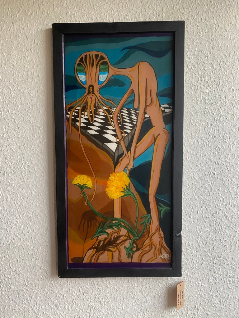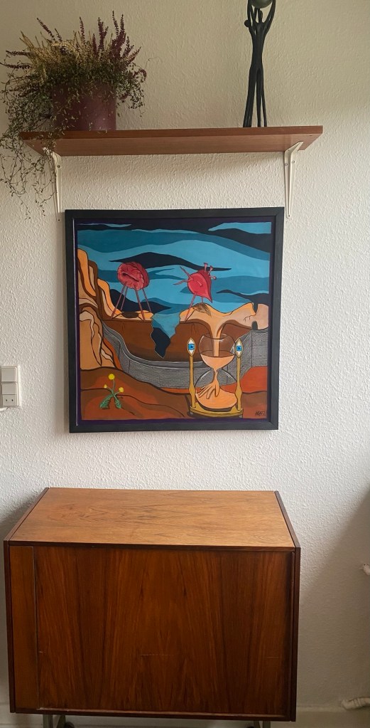 Værket er inspireret af en verden i kaos. Med fokus på fremdrift og konkurrenceevner, slår vi hinanden ud. I det spil vi kalder liv, har vi da nogensinde vundet alene? Når klokken har slået, har du så opnået hvad du ville? Og hvad var det på bekostning af? Når spillet er slut, hvad kigger vi så mod? Et nyt spil, eller en ny sti? Med ‘moderjord’ ved hvor side, ved vi hvad vi bør gøre. Et mælkebøttefrø kan spire umulige steder.