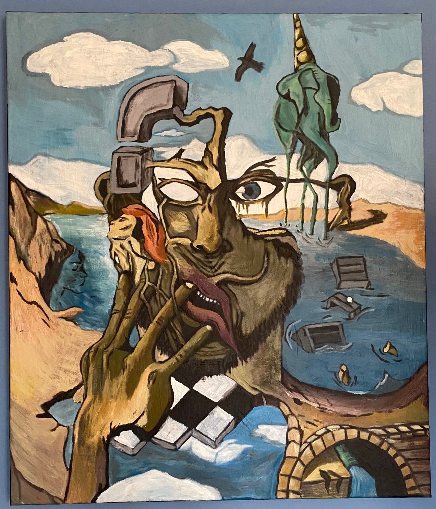 Jeg er inspireret af Salvador Dali og finder ro i den måde han ser verden på. Den er ikke sort/hvid og tingene er ikke altid hvad de ser ud. Malerierne her er ikke mine motiver, men jeg har malet dem og de hænger i mit hjem fordi… well… jeg kan 🙂 .